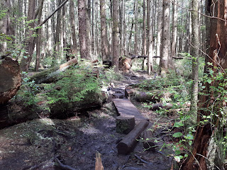 The trail down to the beach was very quick, technical with roots and alota fun, going from Mystic to Bear beach was a after thought and we only went to the 6km marker, so 3 k away when we turned around. It's very technical either uphill or downhill with lots of roots and a bit of mud, zig and zagging, also several trees of various diameter blown down across the trail to make it more of a adventure, again lots of fun. We plan to do it again.
